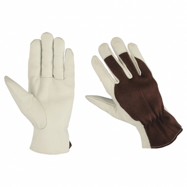 Palm goat skin leather azo free 4 way cloth with neoprene strip keystone thumb index finger shirred elastic red piping.